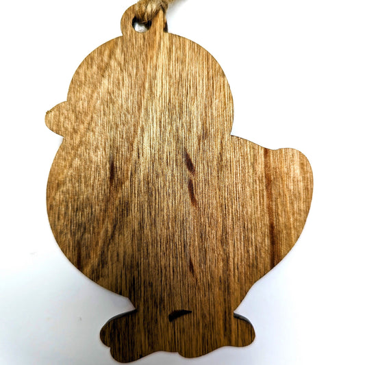 Baby Chick Easter basket tag, Wooden yellow chick, Personalize the wing with name and year