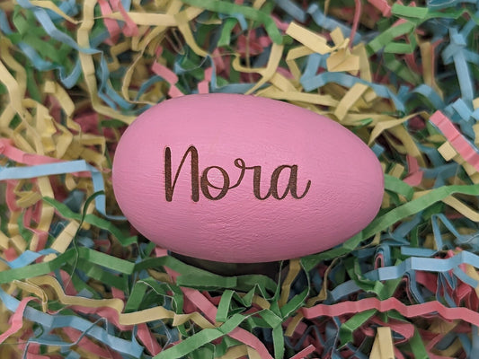 Personalized Wooden Engraved Easter Eggs in 12 colors, Print or script fonts choice of Easter Bunny, Chick, Flowers for kids or grandkids