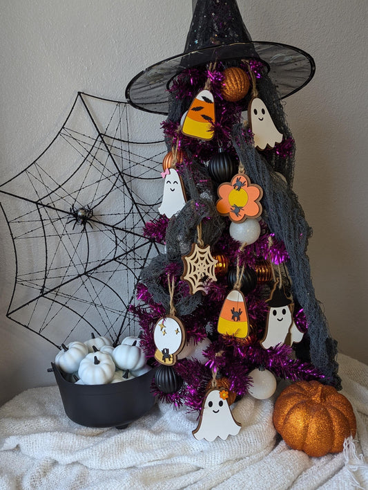 Halloween Ornament, Wooden Cute Spooky Witch Ghost Ornament