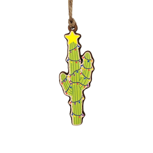 Cactus Christmas Ornament with lights and a Star, desert succulent