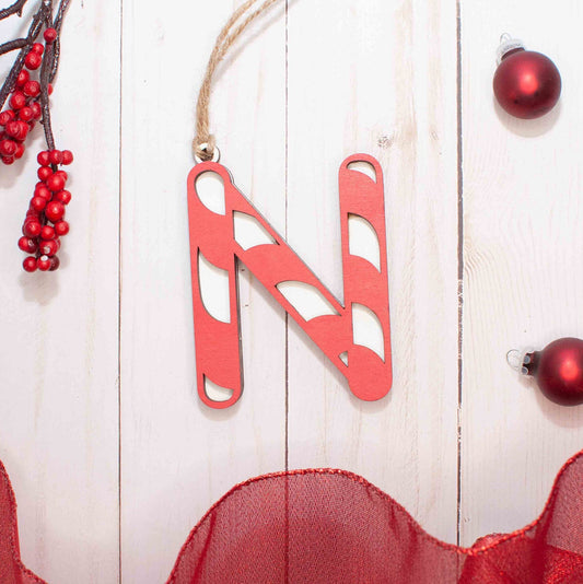 Red and white candy cane letter stocking tags, Monogram Initial Christmas Ornament