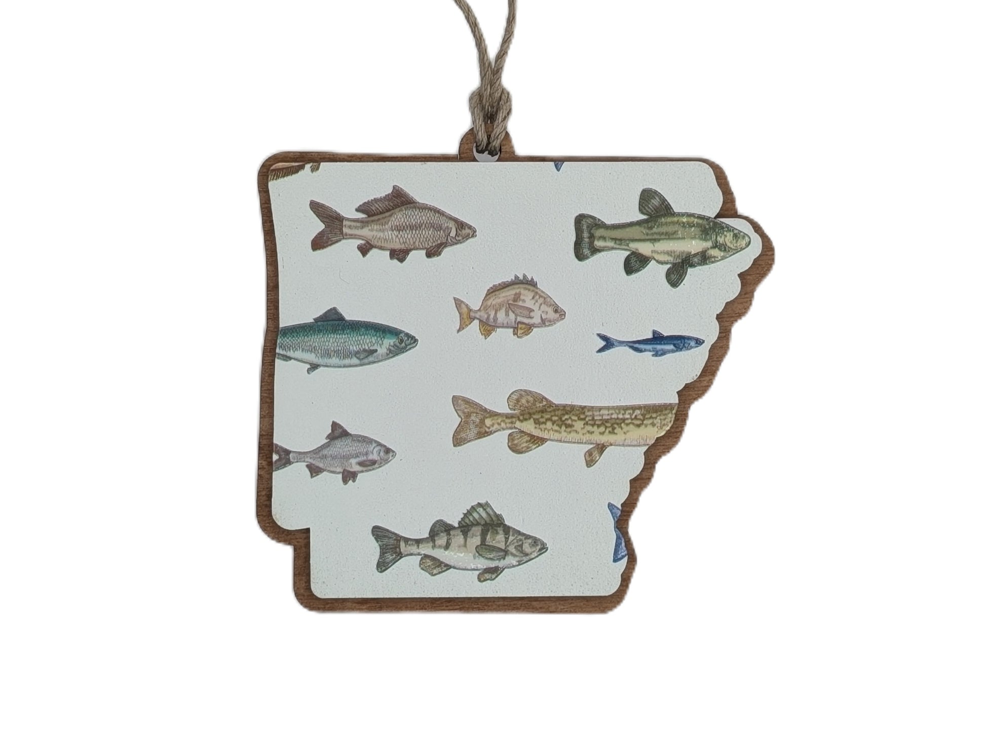 Honor Arkansas’s famous lakes and rivers with this unique fish-themed ornament! Featuring beautifully detailed illustrations of native fish species, it’s a must-have for anglers and nature enthusiasts alike. A perfect keepsake for anyone who loves fishing, boating, or spending weekends by the water.