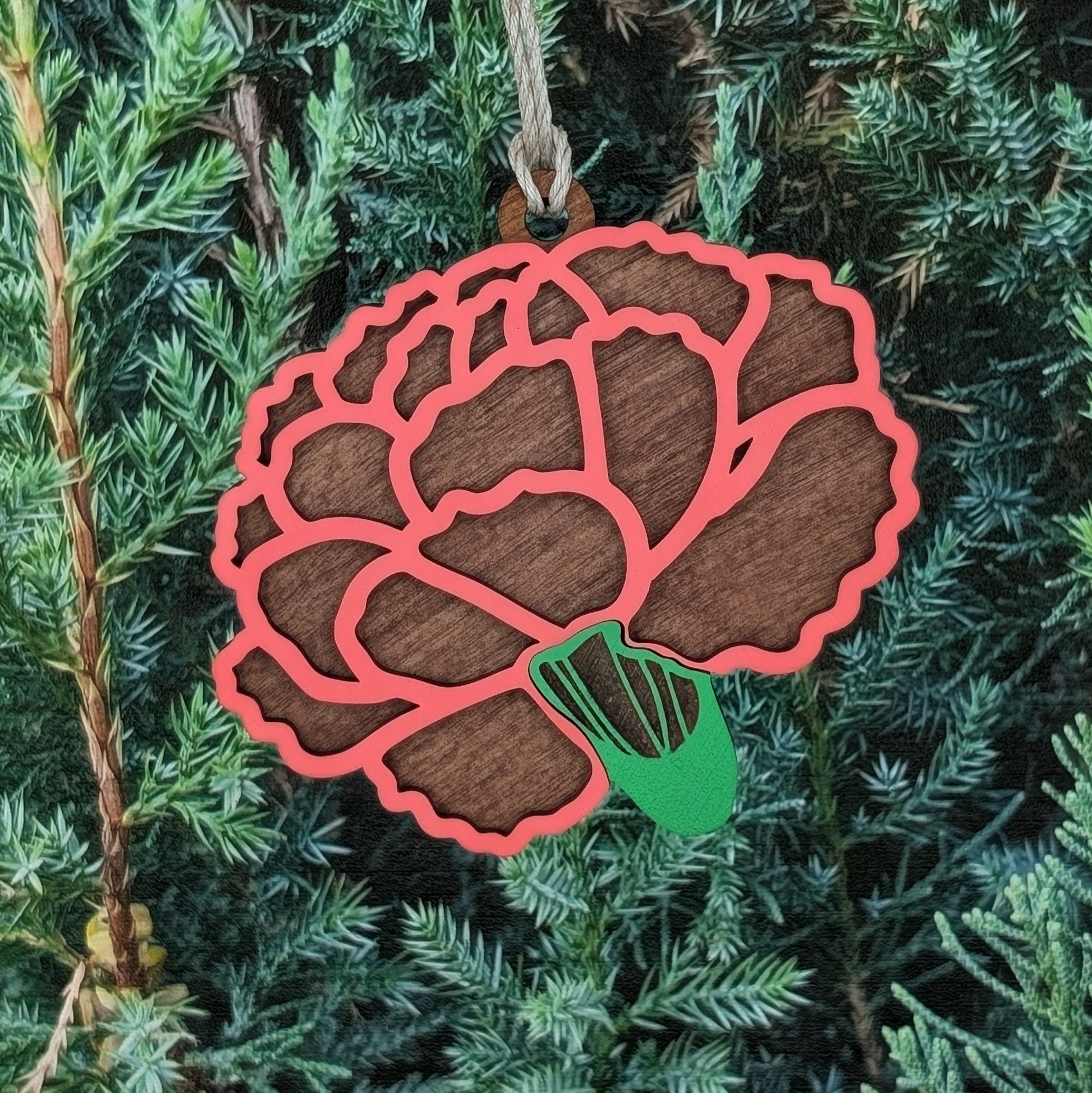 Carnation Flower Christmas Ornament, First anniversary, birth month flower